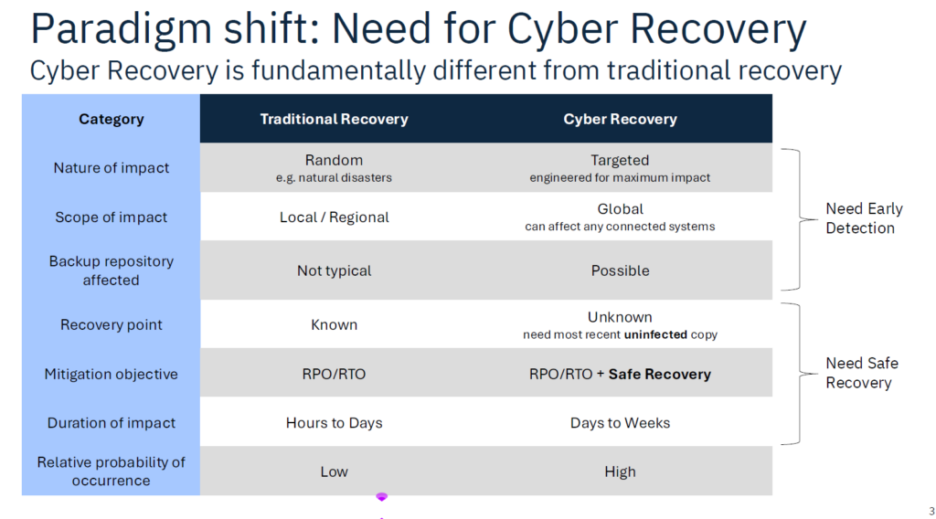 One of the highlights was the presentation by Usman Hameed Ullah, Storage Solutions Architect at IBM, presented the company’s vision and solutions to address one of the greatest challenges organizations face today: data resilience against cyberattacks and critical failures. During his presentation, he emphasized that traditional recovery, designed for natural disasters or random failures, is no longer sufficient in the face of cyber threats, which are targeted, global, and far more enduring.