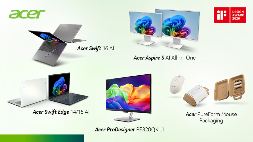 Acer today announced that several products have been honored with the iF Design Award 2026. Across multiple product categories, this year’s design winners include: the Acer Swift 16 AI consumer laptop, the Acer Swift Edge 14/16 AI consumer laptops, the Acer ProDesigner PE320QK L1 monitor, the Acer Aspire S AI all-in-one desktop, and the Acer PureForm Mouse Packaging.